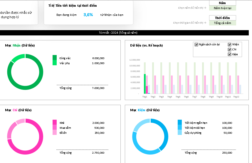- Theo dõi Ngân sách (Budget Tracker): Sản phẩm cung cấp biểu đồ và thống kê chi tiết về thu nhập, chi tiêu, và tiết kiệm, giúp bạn hiểu rõ tình hình tài chính cá nhân.